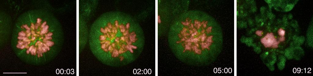Ao microscópio, captaram-se dezenas de sequências de imagens que dão a ver em filme o que sucedia às células na presença da proteína mutada. Num dos vídeos, mais de nove horas depois de terem perdido os dois pólos do fuso mitótico, elas suicidaram-se. Fim da história e, quem sabe, se o início de outra sobre um avanço na luta contra o cancro.