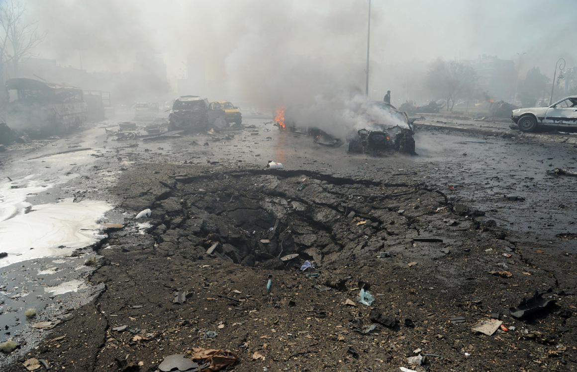 Uma explosão no centro de Damasco provocada por um carro armadilhado, perto da sede do partido do Presidente Bashar al-Assad, terá feito mais de 40 mortos e outras dezenas de feridos. Fotografias partilhadas na rede social Twitter e imagens do canal estatal Al-Ikhbariya mostram corpos no chão e automóveis em chamas.