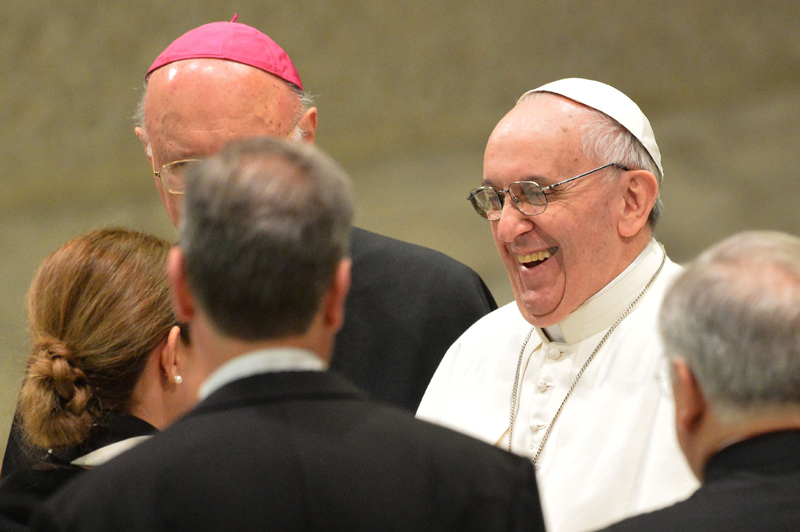 No fim, o Papa levantou-se e partilhou o palco com alguns jornalistas que saudou, um a um. Entre eles estava Giovanna Chirri, a jornalista da agência italiana ANSA que foi a primeira a dar a notícia da renúncia de Bento XVI, anunciada pelo agora Papa emérito sem aviso, no meio de uma intervenção em latim. Depois de noticiar a decisão de Ratzinger, contou entretanto Giovanna Chirri, a jornalista chorou. Nesta manhã, sorriu enquanto estendia a mão ao Papa e os colegas aplaudiam.